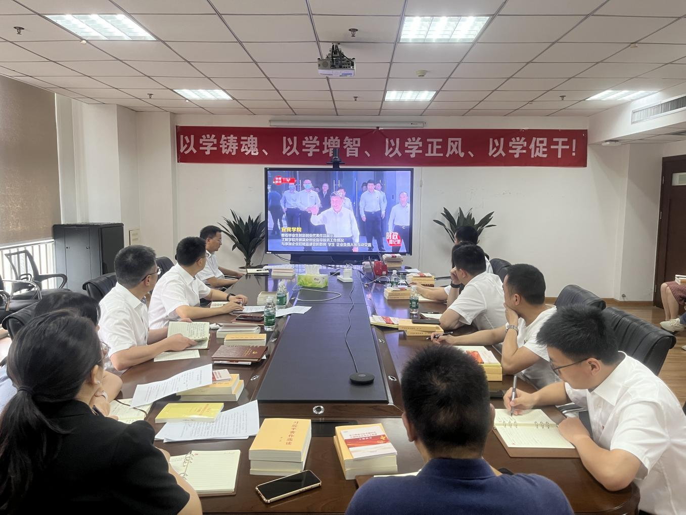 會(huì)上,全體黨員、入黨積極分子、班子成員觀看了習(xí)近平總書(shū)記2022年6月來(lái)川視察官方新聞報(bào)道視頻,聆聽(tīng)習(xí)近平總書(shū)記來(lái)川調(diào)研的一系列重要指示。通過(guò)讀原著、學(xué)原文的方式,組織與會(huì)人員專題學(xué)習(xí)了《習(xí)近平著作選讀》《習(xí)近平新時(shí)代中國(guó)特色社會(huì)主義思想學(xué)習(xí)綱要(2023版)》等書(shū)籍內(nèi)容,堅(jiān)持在集體研學(xué)的同時(shí),認(rèn)真?zhèn)€人自學(xué),不斷增進(jìn)與會(huì)人員對(duì)黨的創(chuàng)新理論和政治認(rèn)同、思想認(rèn)同、感情認(rèn)同,引領(lǐng)推動(dòng)與會(huì)人員做到學(xué)思用貫通、知行信合一。學(xué)習(xí)后,參會(huì)班子分享了自己在學(xué)習(xí)貫徹習(xí)近平新時(shí)代中國(guó)特色社會(huì)主義思想主題教育中的學(xué)習(xí)方法和學(xué)習(xí)心得。