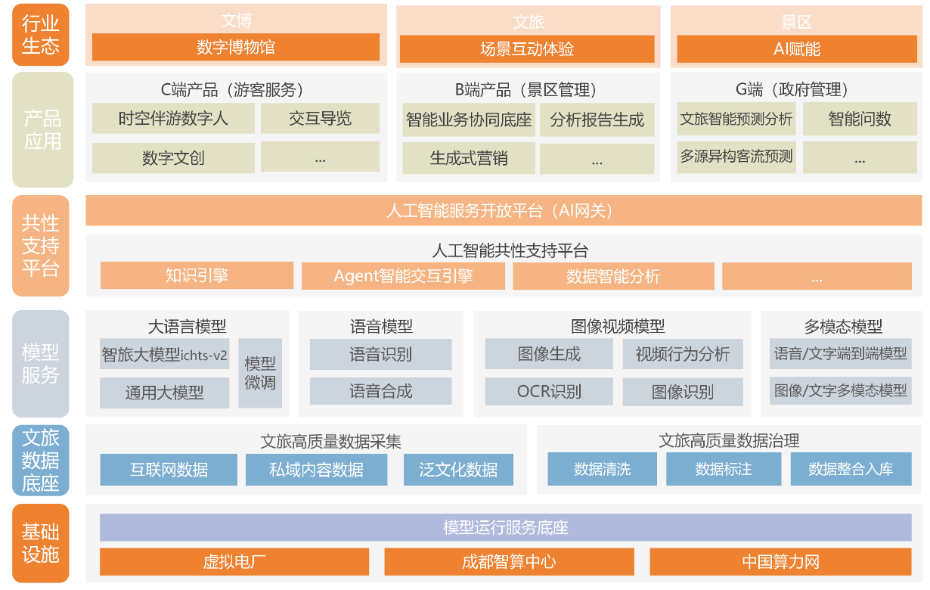 "智旅"大模型依托成都智算中心澎湃算力,構建“智算中心+模型運行服務底座”基礎設施體系,實現按需調度、靈活部署,滿足文旅全場景的算力需求。