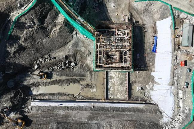項(xiàng)目總裝機(jī)容量為13.5萬(wàn)千瓦,主要建筑由首部樞紐、引水系統(tǒng)和廠區(qū)樞紐組成,總投資22.61億元。目前首部樞紐過(guò)河涵管回填砼及縱向砼圍堰澆筑完成,廠區(qū)樞紐覆蓋層鋼管樁施工完成,引水系統(tǒng)支洞貫通,正在進(jìn)行引水系統(tǒng)壓力管道上平段開(kāi)挖。